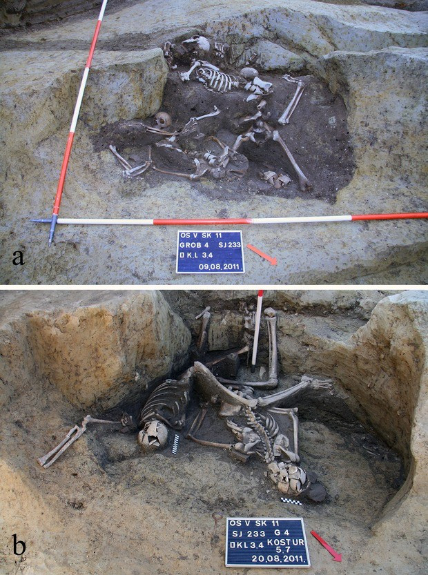 Những bộ hài cốt trên được tìm thấy vào năm 2011 trong cuộc khai quật khảo cổ trước khi triển khai xây dựng một trường đại học ở Osijek, nơi từng được gọi là thị trấn Mursa dưới thời Đế chế La Mã. Ảnh: PLOS One.