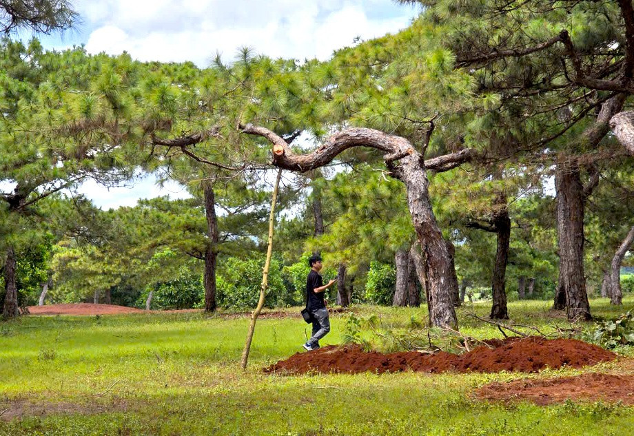 Trước đó, các cơ quan báo chí đã phản ánh nhiều lần về việc rừng thông có dáng thế bonsai tại khu vực Dự án sân golf Đak Đoa bị xâm hại.