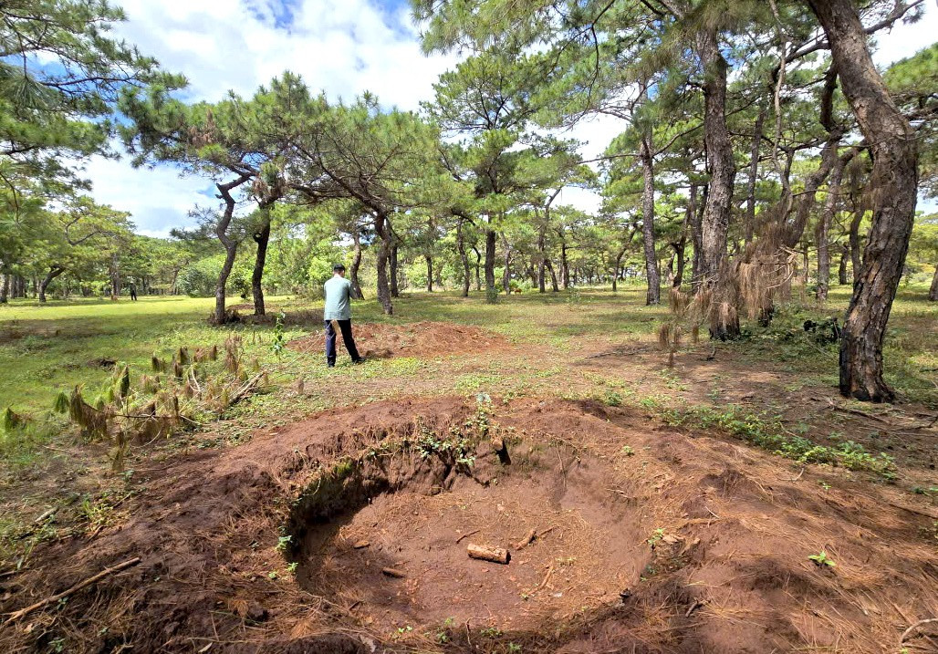 Dày đặc lỗ lớn để lại sau khi thông bị đào trộm.
