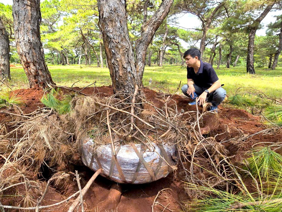 Mới đây, báo chí tiếp tục ghi nhận tình trạng kẻ gian ngang nhiên khoanh gốc, dùng nilon bọc thành bầu, chuẩn bị vận chuyển ra ngoài tiêu thụ. Qua ghi nhận, hàng chục cây thông bị đào bứng, vận chuyển đi nơi khác để lại các hố lớn rải rác khắp nơi. Có 3 cây thông đã được đào quanh gốc, bọc bầu chuẩn bị được vận chuyển đi nơi khác.