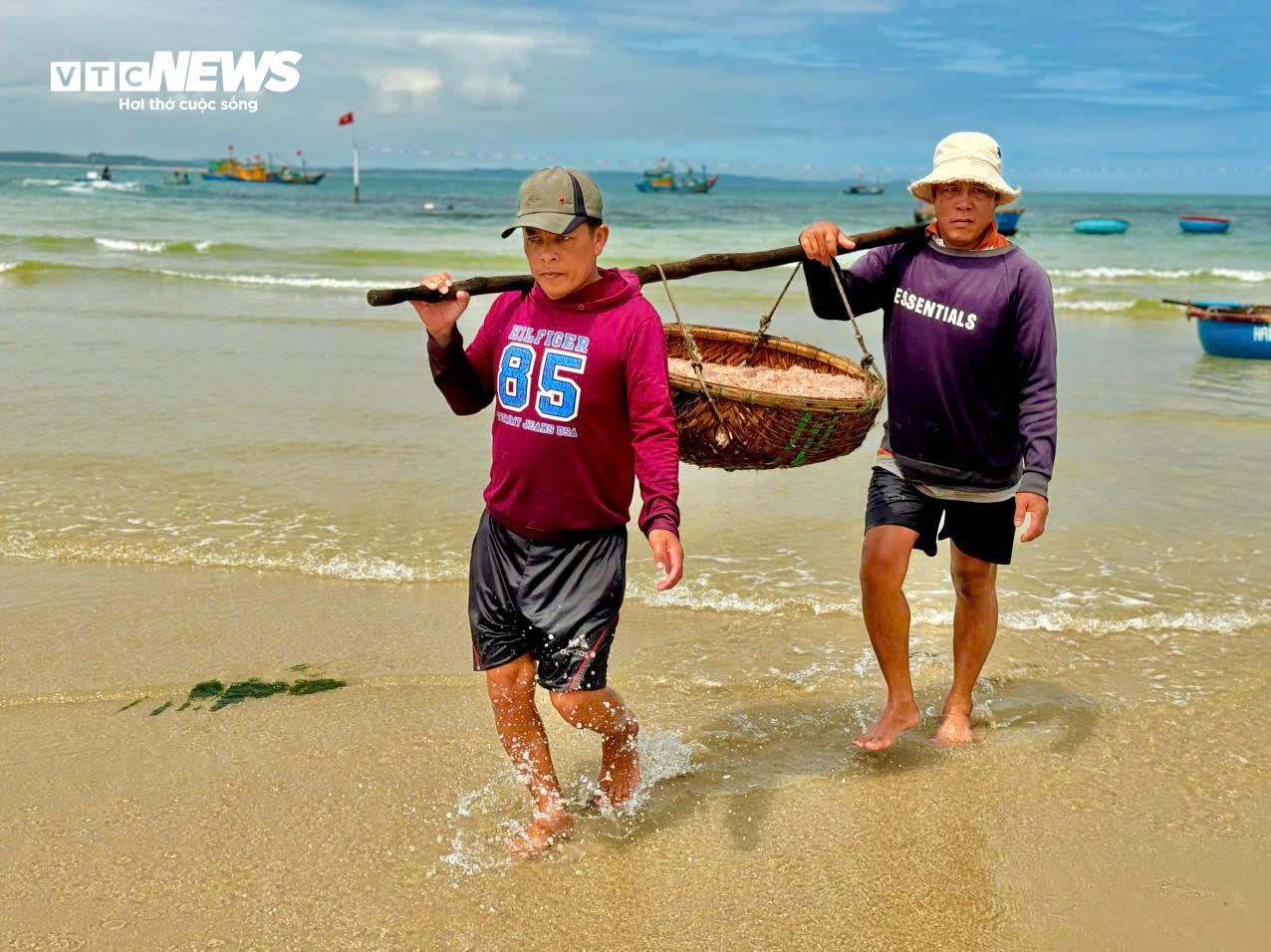 Ruốc đỏ au được vận chuyển vào bờ và bán "đắt như tôm tươi".