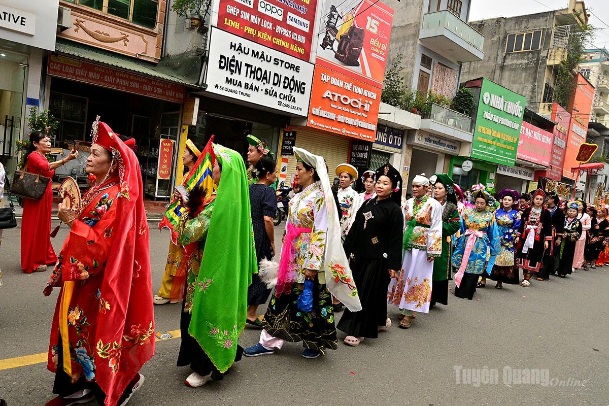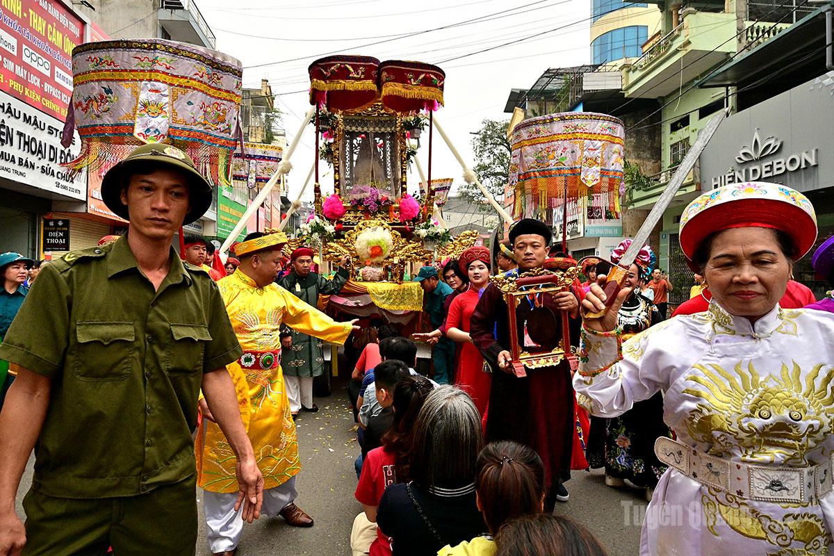 Rất nhiều thanh đồng, du khách tham gia lễ rước.