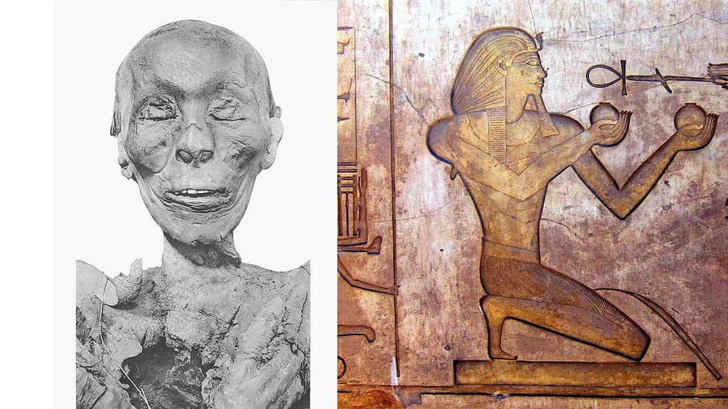 Pharaoh Thutmose II chỉ 13 tuổi khi kết hôn với người em gái cùng cha khác mẹ là Hatshepsut. Hôn nhân cận huyết là một truyền thống phổ biến trong hoàng tộc Ai Cập thời cổ đại để bảo vệ quyền lực và dòng dõi cao quý. Ảnh: Andrzej Niwiński/Warsaw University’s Institute of Archaeology.