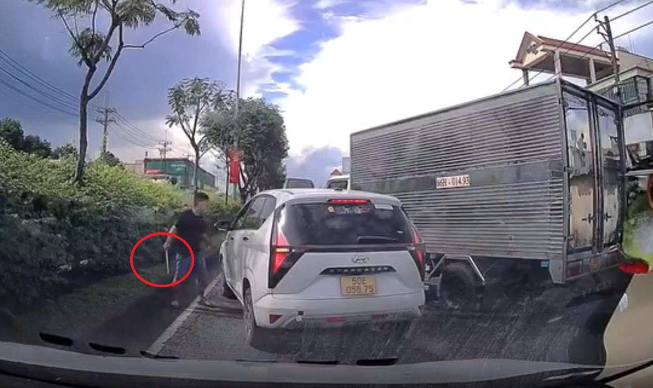 Đáng chú ý, ngay sau khi hai xe dừng lại, tài xế xe tải mở cửa bước xuống, cầm theo một vật cứng (được cho là tuýp sắt), đập mạnh liên tiếp vào cửa kính ô tô 7 chỗ. Vụ việc sau đó leo thang thành tranh cãi trên đường, gây cản trở và ùn tắc giao thông.