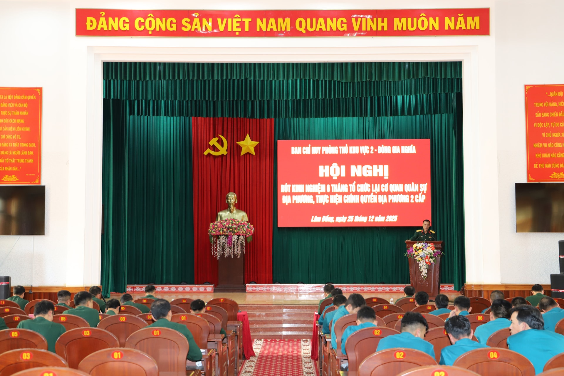 Sau 6 tháng triển khai thực hiện Đề án số 839-ĐA/QUTW ngày 24/5/2025 của Quân ủy Trung ương về tiếp tục sắp xếp, tổ chức lại cơ quan QSĐP theo hướng “tinh, gọn, mạnh”, Đảng ủy Ban Chỉ huy Phòng thủ khu vực (CHPTKV) 2 – Đông Gia Nghĩa đã lãnh đạo, chỉ đạo các cơ quan, đơn vị và Ban CHQS cấp xã quán triệt, triển khai nghiêm túc chủ trương, đường lối của Đảng, chính sách, pháp luật của Nhà nước; bảo đảm sự ổn định, thông suốt trong lãnh đạo, chỉ huy, điều hành ngay sau sắp xếp.