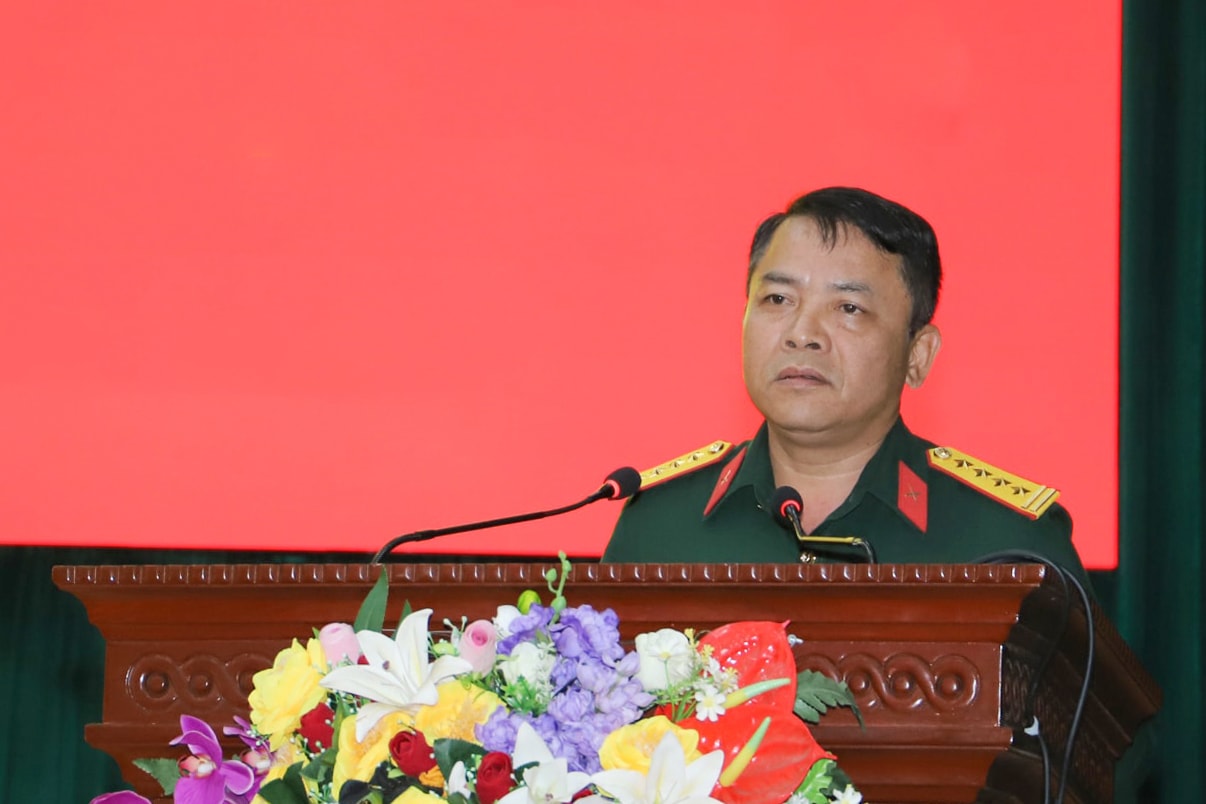 Đại tá Lê Trúc Lâm, Phó Chỉ huy trưởng Bộ CHQS tỉnh Lâm Đồng phát biểu tại hội nghị