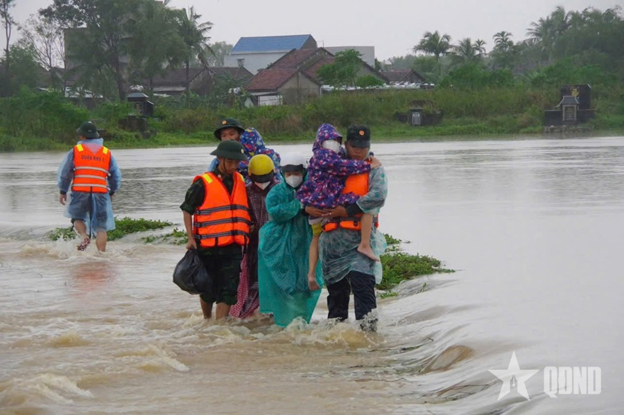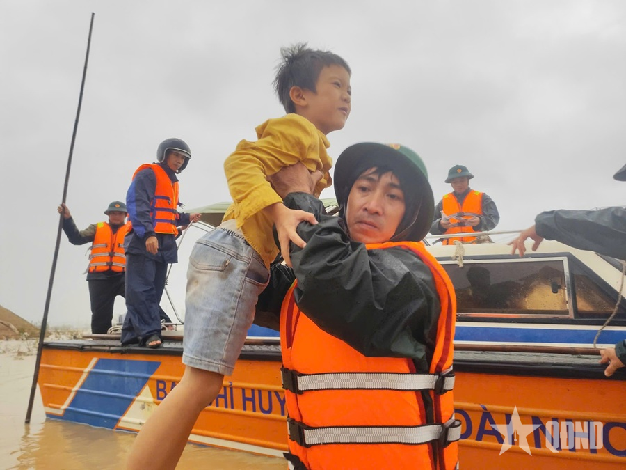 Cán bộ, chiến sĩ Ban chỉ huy Phòng thủ khu vực 6-Tuy Hòa (Bộ CHQS tỉnh Đắk Lắk) ứng cứu người dân trong trận lũ tháng 11-2025.