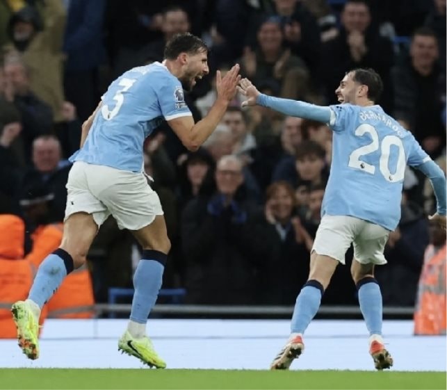Sau tiếng còi khai cuộc, Man City đã tràn qua phần sân của Sunderland. Hàng loạt tình huống tấn công được đội chủ sân Eihad triển khai, đặt khung thành của Sunderland vào trạng thái báo động. Tuy nhiên, “Mèo đen” mới là đội có cơ hội rõ nét hơn The Citizens với 2 tình huống có thể thành bàn, song họ không tận dụng được. Sức mạnh áp đảo của Man City sau đó đã được cụ thể hóa bằng 2 bàn thắng liên tiếp trong vòng 4 phút. Đầu tiên là cú sút xa của Dias từ cự ly gần 30m, bóng chạm người cầu thủ Sunderland rồi đi thẳng vào lưới ở phút thứ 31. Đến phút 35, tỉ số là 2-0 nghiêng về Man City khi Gvardiol bật cao đánh đầu tung lưới Sunderland sau khi đón được quả phạt góc của đồng đội.