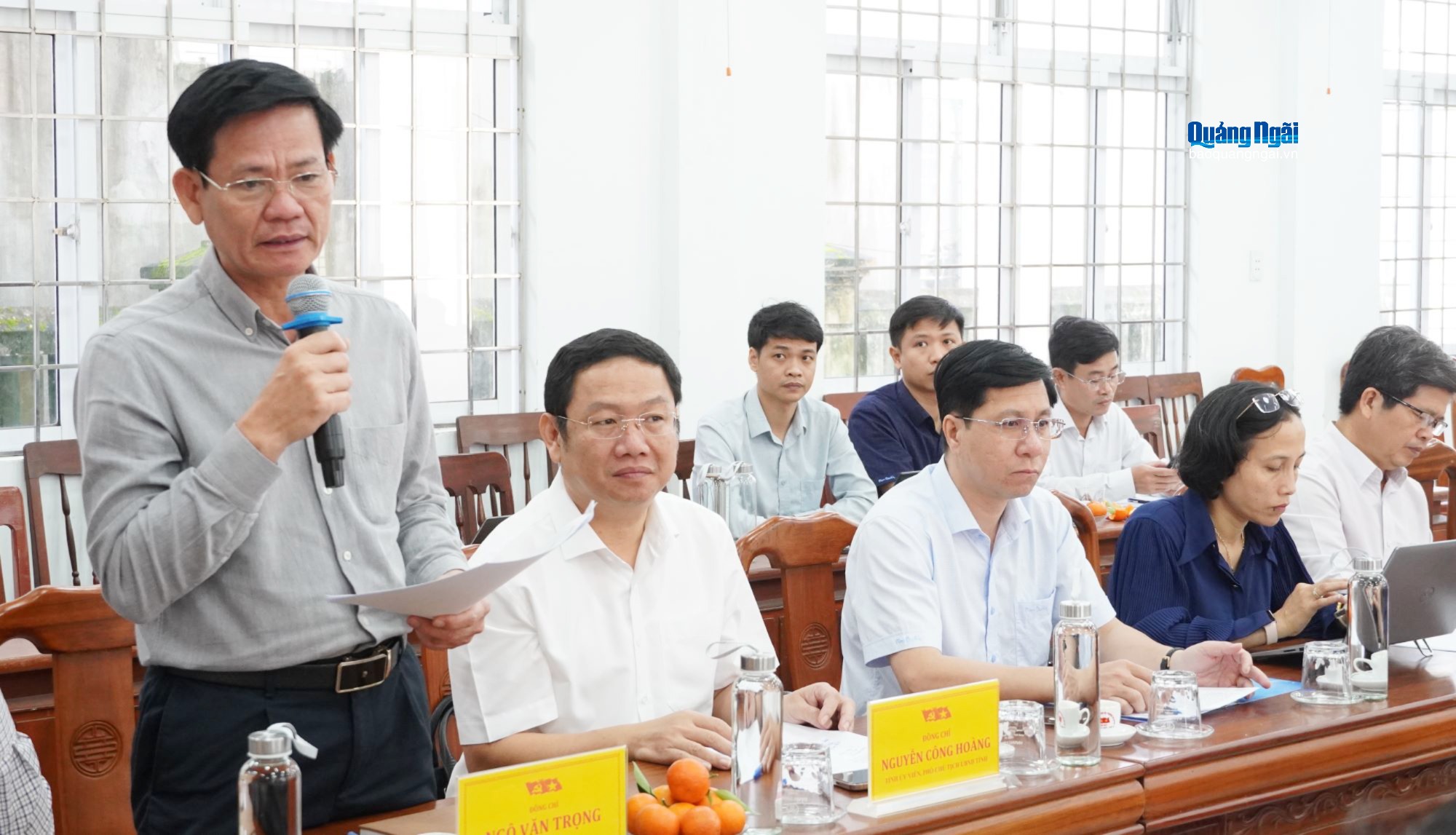 Ủy viên Ban Thường vụ Tỉnh ủy, Trưởng ban Tuyên giáo và Dân vận Tỉnh ủy Ngô Văn Trọng trao đổi tại buổi làm việc.