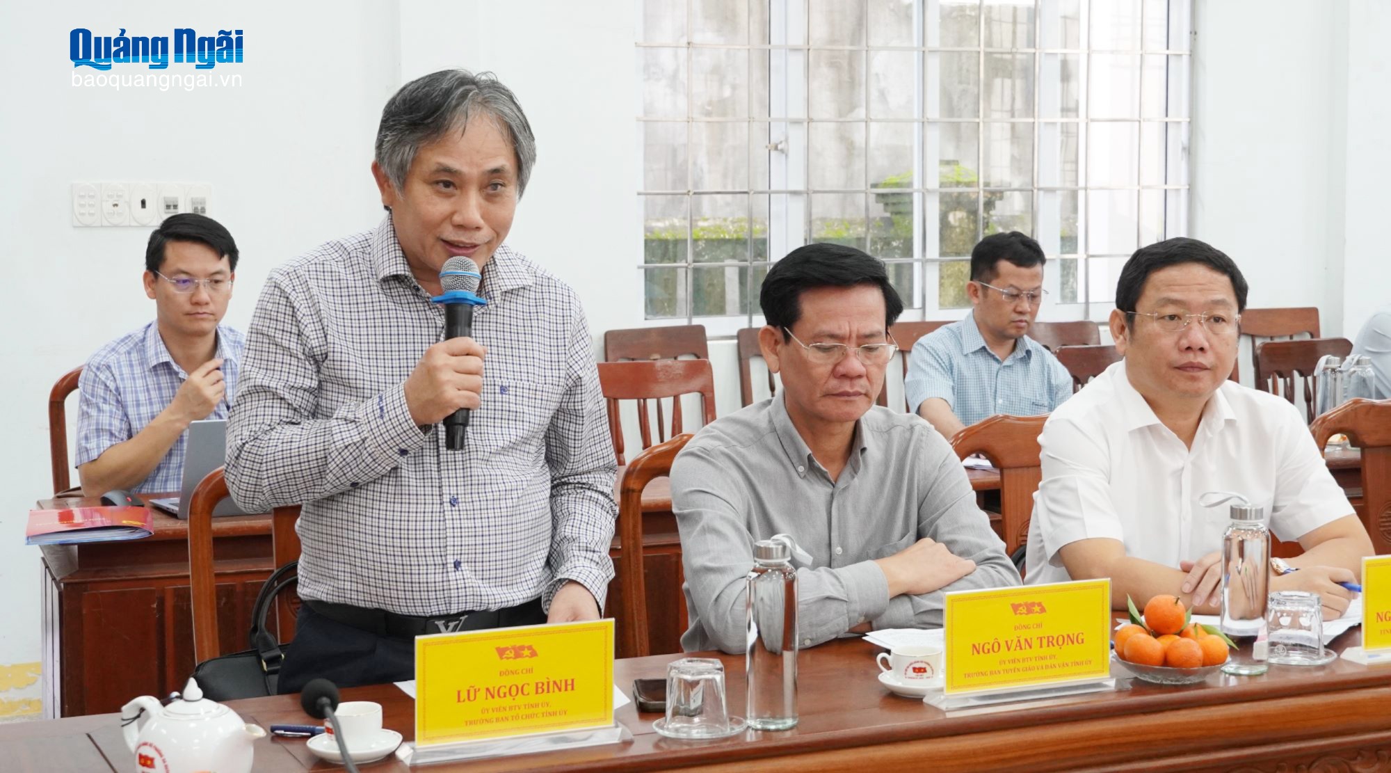 Ủy viên Ban Thường vụ Tỉnh ủy, Trưởng ban Tổ chức Tỉnh ủy Lữ Ngọc Bình trao đổi tại buổi làm việc.