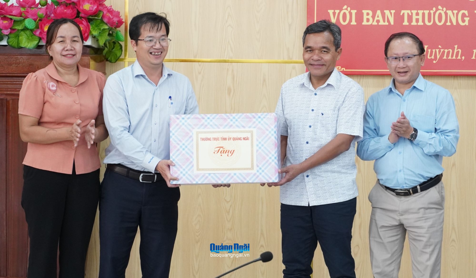 Ủy viên Trung ương Đảng, Bí thư Tỉnh ủy Hồ Văn Niên tặng quà Đảng ủy phường Sa Huỳnh.