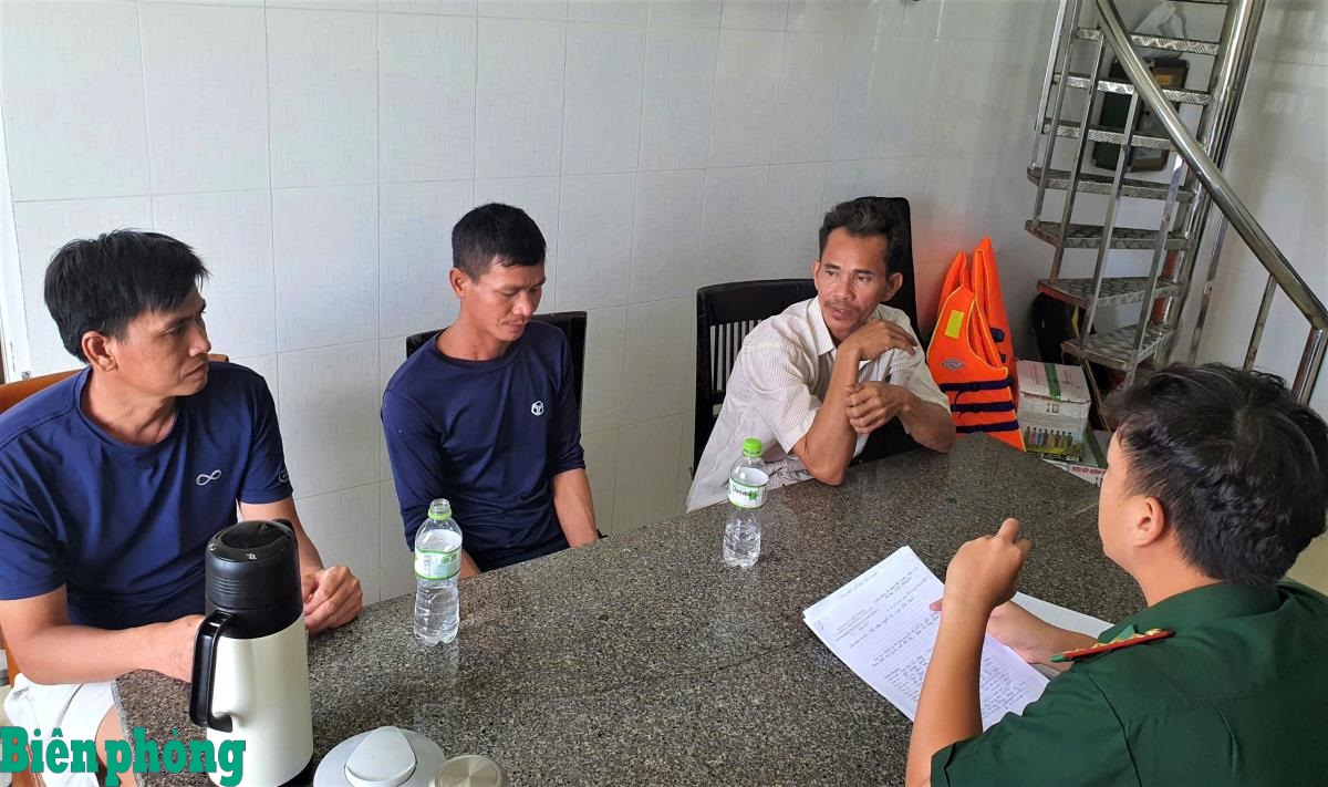 Ban Chỉ huy Biên phòng cửa khẩu cảng Bà Rịa - Vũng Tàu thăm hỏi sức các thuyền viên sà lan Long An 05553 bị nạn trên biển. Ảnh: Quang Anh