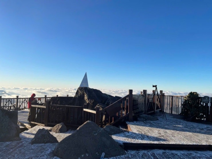 Đến khoảng 7h30 sáng, khi mặt trời lên cao, băng bắt đầu tan dần, chỉ còn lại lớp mỏng bám trên khu vực đỉnh và sàn cột cờ. Đây cũng là thời điểm lý tưởng để du khách chiêm ngưỡng sự chuyển mình của thiên nhiên giữa không gian băng giá và nắng sớm trên đỉnh núi cao.