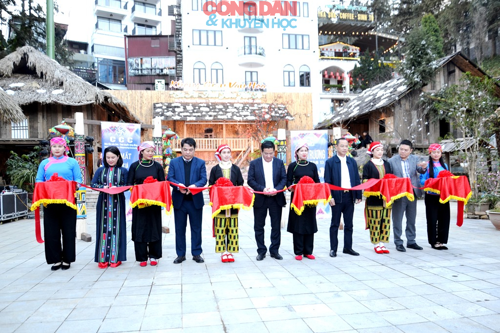 Cắt băng khai trương"Không gian văn hóa Sa Pa tinh hoa hội tụ" tại Khu du lịch Sa Pa. Ảnh: Quốc Hồng