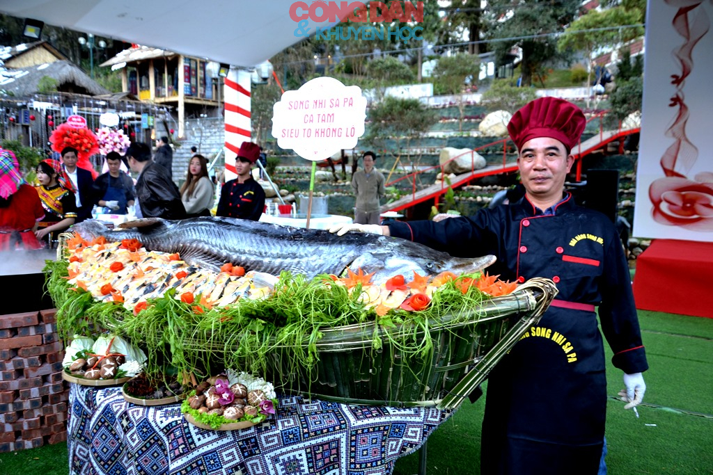 Xác lập kỷ lục món lẩu cá tầm nặng hơn 50kg của cơ sở Song Nhi tại Sa Pa. Ảnh: Quốc Hồng