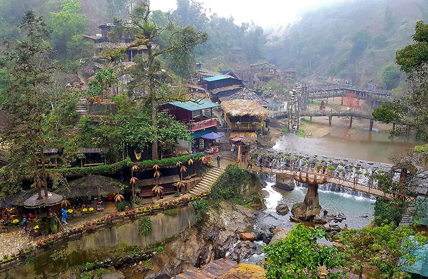 Không chỉ có cảnh sắc, Sa Pa còn hấp dẫn bởi chuỗi trải nghiệm mang đậm dấu ấn văn hóa. Các bản làng như Tả Van, Lao Chải hiện ra yên bình giữa thung lũng Mường Hoa, nơi những thửa ruộng bậc thang trải dài trong làn sương mỏng. Chợ phiên vùng cao, tiêu biểu là chợ Bắc Hà, mang đến không gian sinh hoạt rộn ràng, nơi đồng bào các dân tộc gặp gỡ, trao đổi sản vật và giữ gìn những nét văn hóa truyền thống. Ảnh dulichsapa