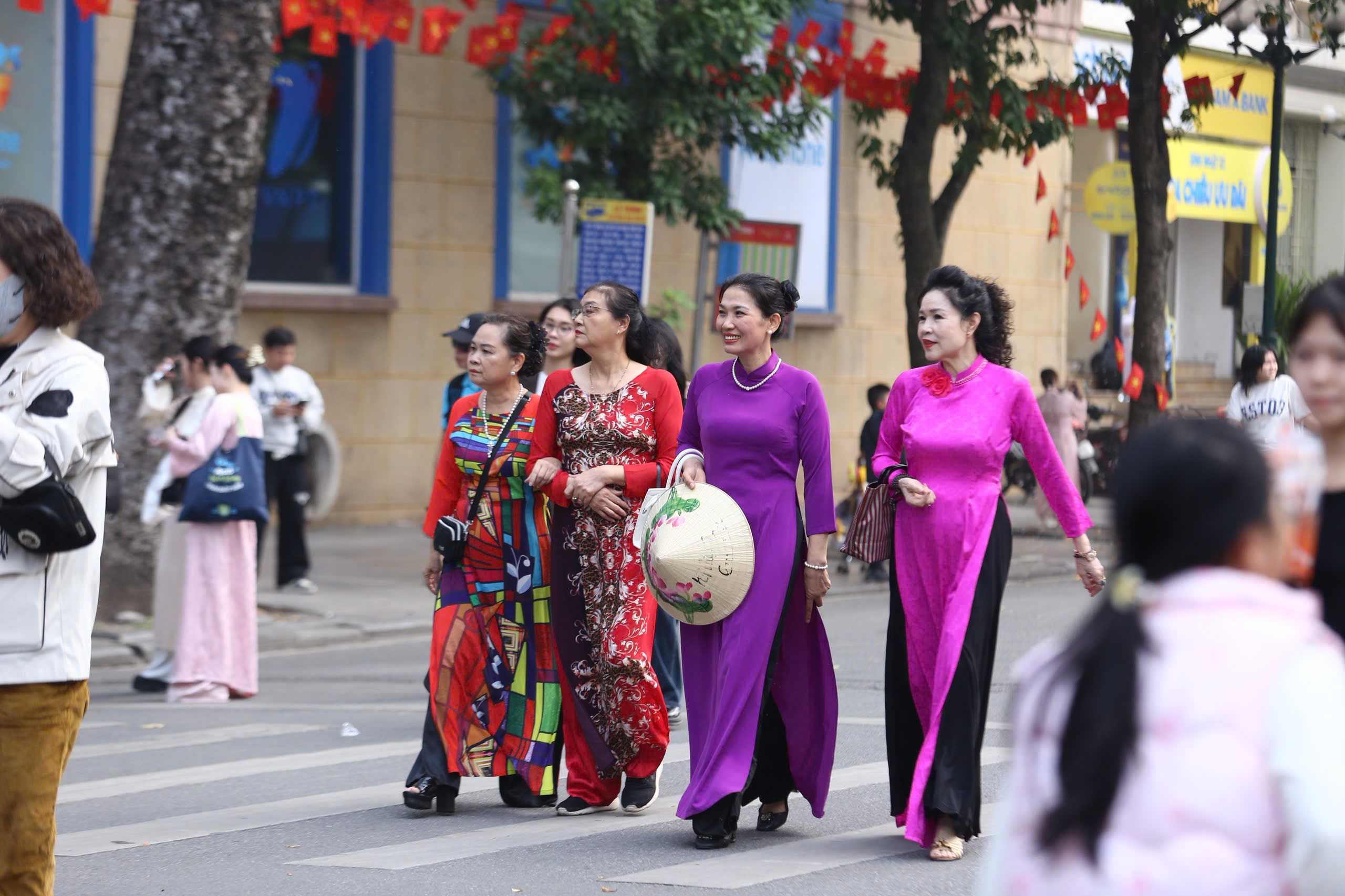 Dễ nhận thấy, không chỉ các bạn trẻ yêu thích “check-in”, nhiều người trung niên, cao tuổi cũng lựa chọn áo dài như một cách thể hiện sự trân trọng giá trị văn hóa và lưu giữ ký ức đẹp đầu năm.