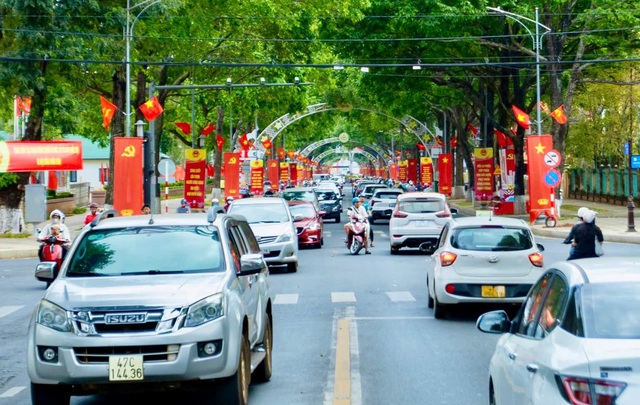Khắp các tuyến đường, khu dân cư, trụ sở cơ quan nhà nước trên địa bàn tỉnh Đắk Lắk đều được trang hoàng rực rỡ, pano, băng rôn, khẩu hiệu. Ảnh: TN.