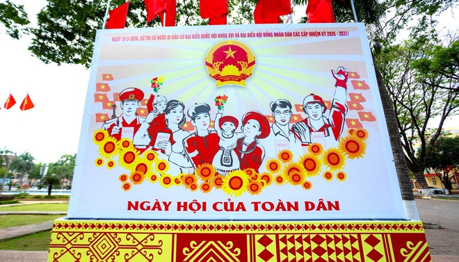 Pano tuyên truyền ngày bầu cử tại khu vực Quảng trường 10/3, Buôn Ma Thuột, tỉnh Đắk Lắk. Ảnh: TN.