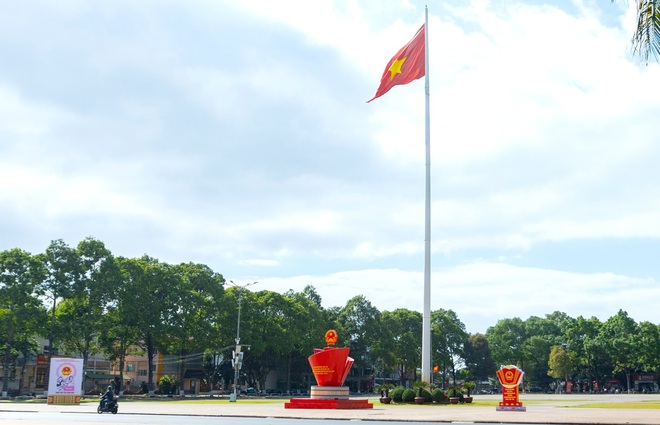 Khu vực Tượng đài Ngã 6 Buôn Ma Thuột, trung tâm tỉnh Đắk Lắk, được trang trí trước ngày bầu cử.