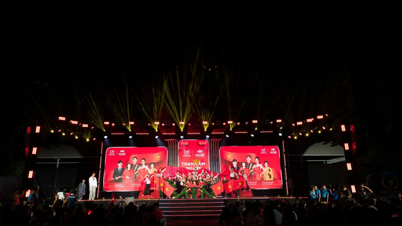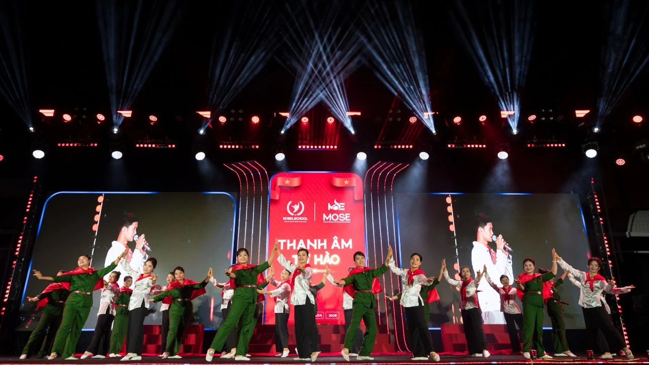 Tại Trường Liên cấp Nobel An Hưng, sự kiện âm nhạc “MOSE 2026 - THANH ÂM TỰ HÀO” trở thành điểm nhấn đặc biệt trong chuỗi hoạt động kỷ niệm. Được tổ chức vào tối 23/4, chương trình mang đến một không gian nghệ thuật giàu cảm xúc, tái hiện tinh thần tháng Tư lịch sử thông qua âm nhạc và các hoạt động trải nghiệm. Ngay từ sớm, khuôn viên nhà trường đã rực rỡ sắc đỏ, học sinh, phụ huynh cùng tham gia check-in và theo dõi những thước phim về hành trình phát triển của hệ thống giáo dục.