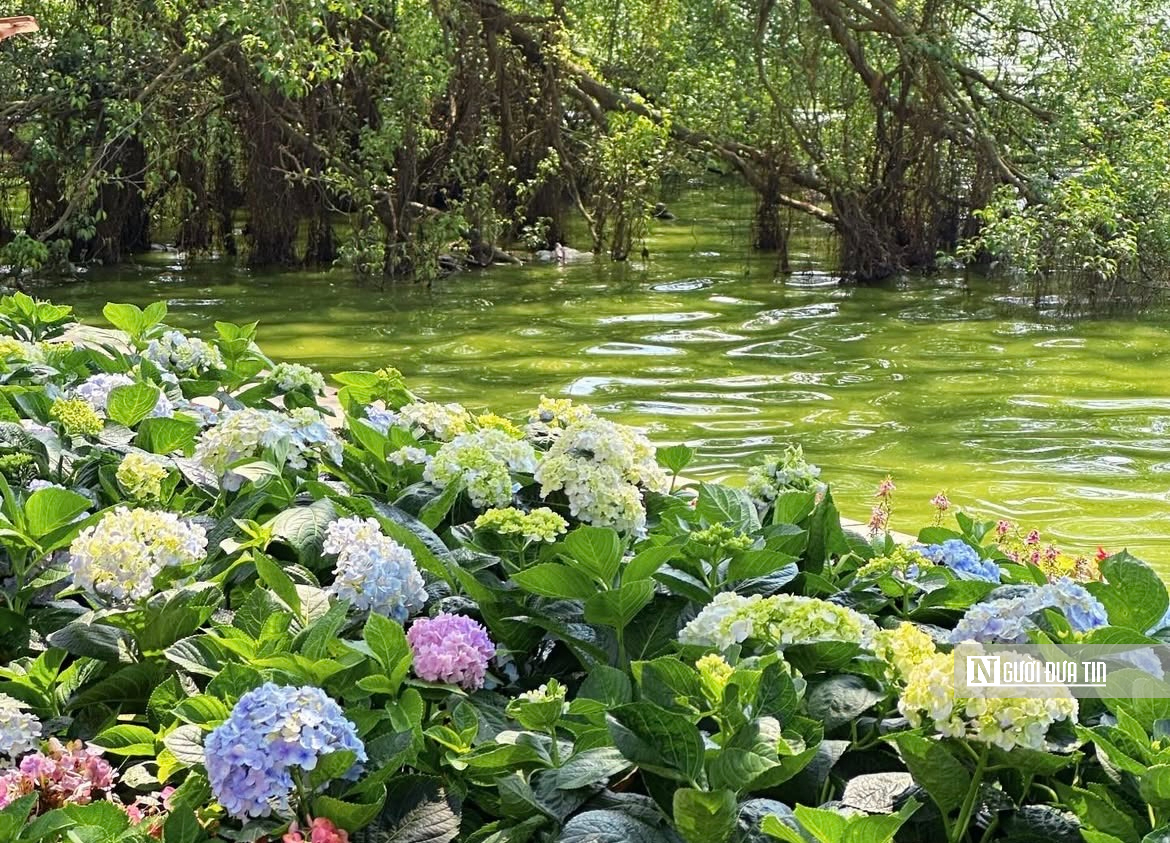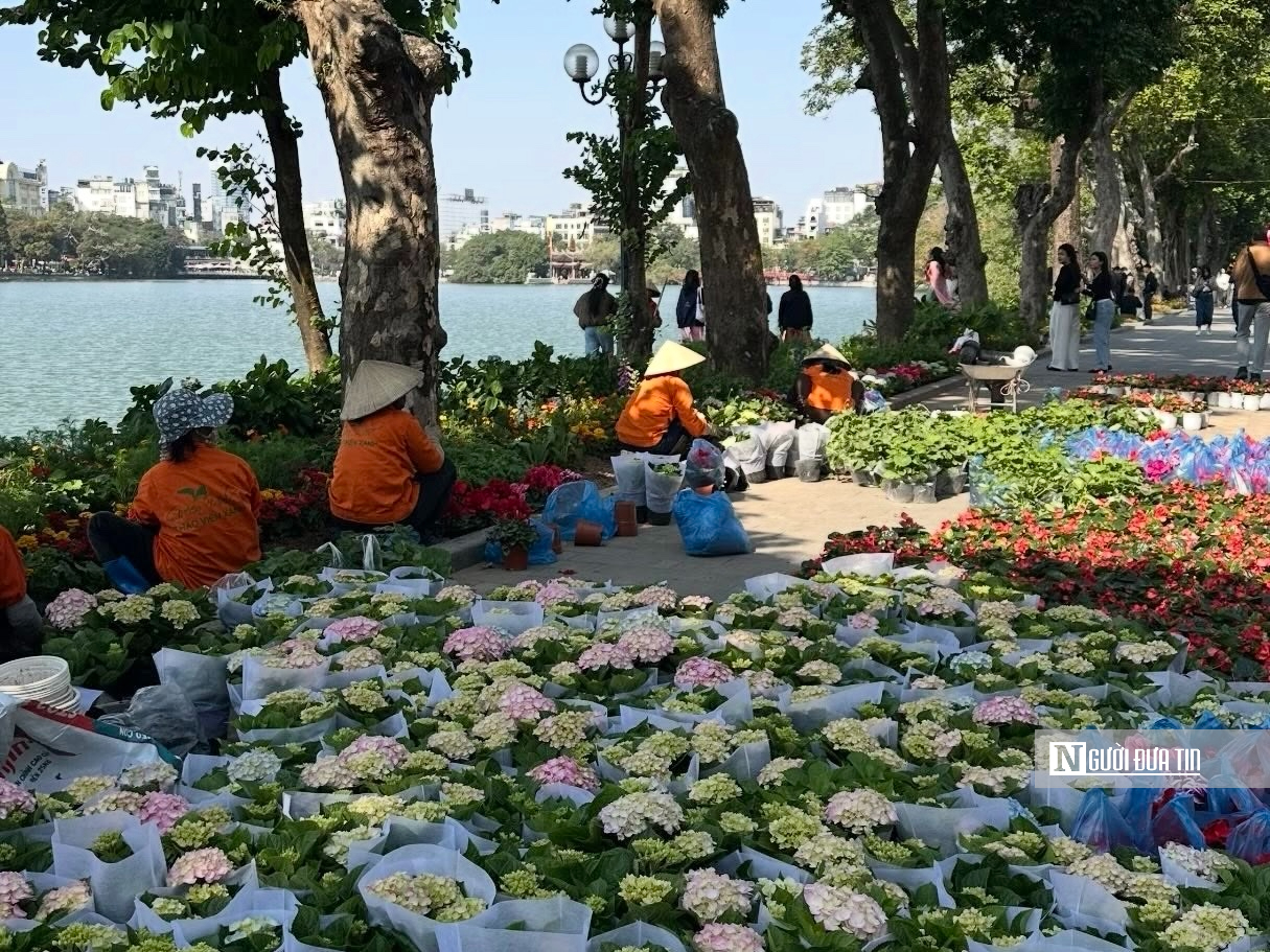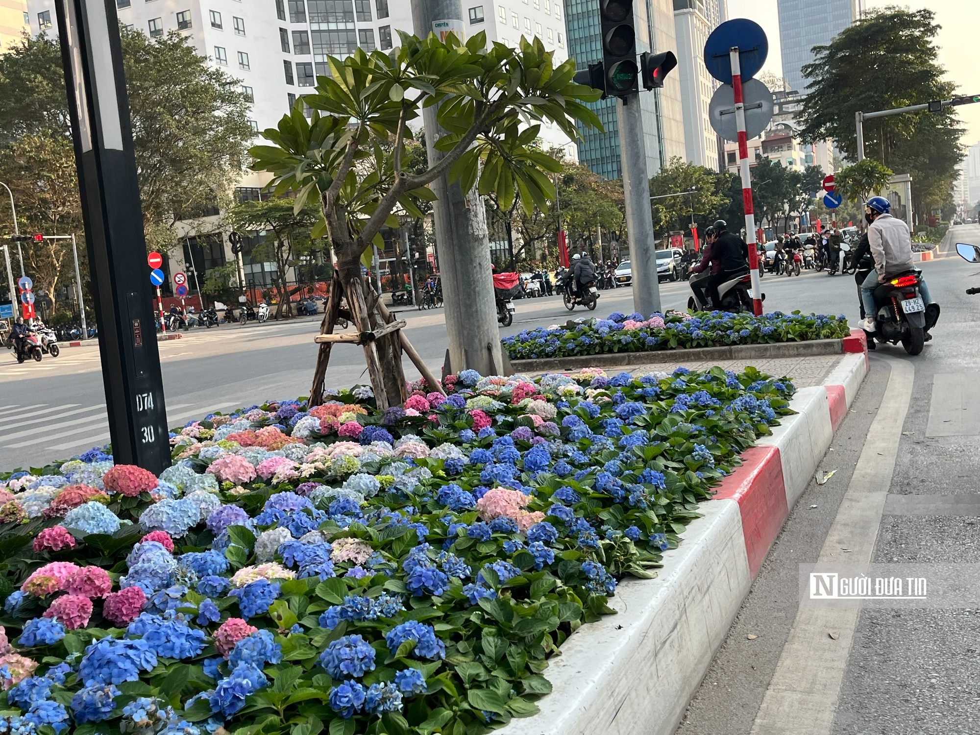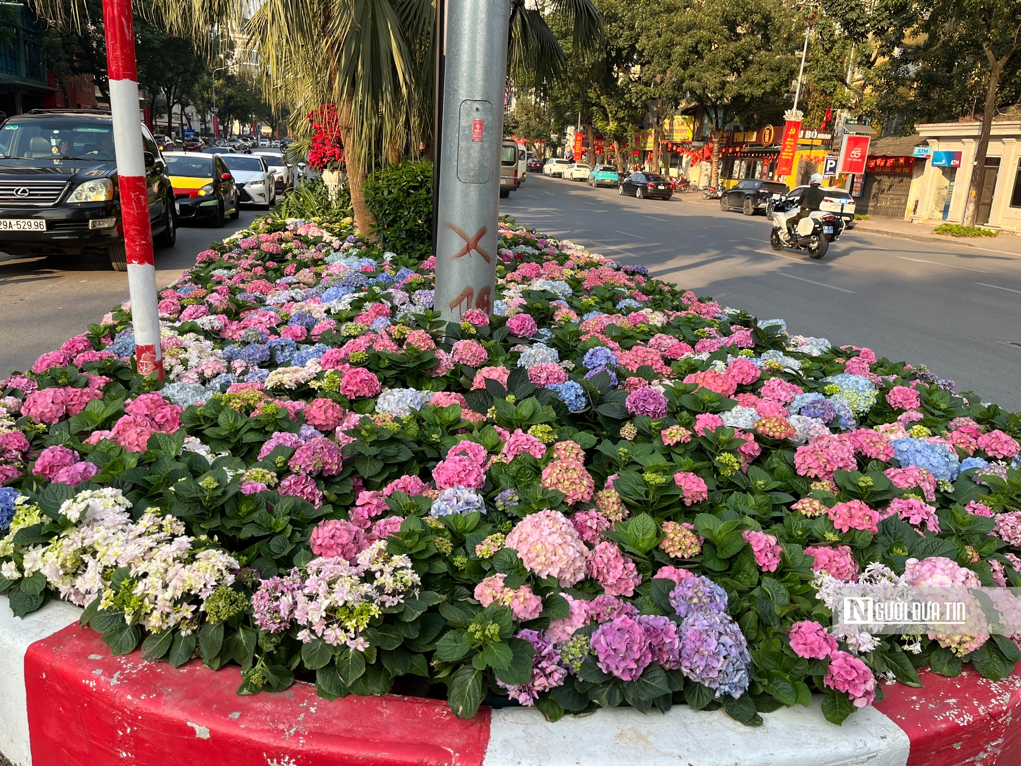 Không chỉ xuất hiện trên tuyến phố Trần Duy Hưng, hoa cẩm tú cầu còn được trồng tại khu vực hồ Hoàn Kiếm, mang đến một gam màu mới cho không gian trung tâm Thủ đô.