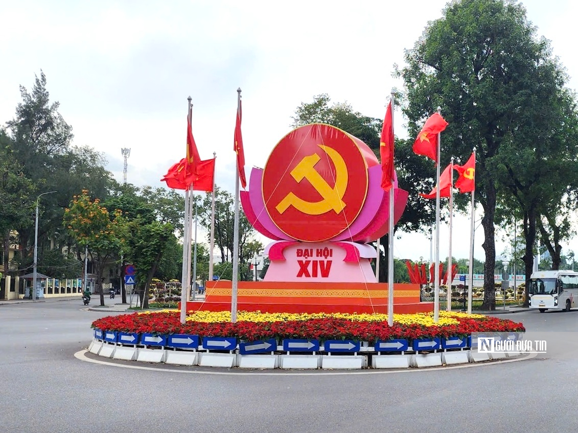 Biểu tượng búa liềm, cờ Đảng, cờ Tổ quốc được bố trí trang trọng tại nút giao Điện Biên Phủ - Độc Lập - Chu Văn An, chào mừng Đại hội đại biểu toàn quốc lần thứ XIV của Đảng.