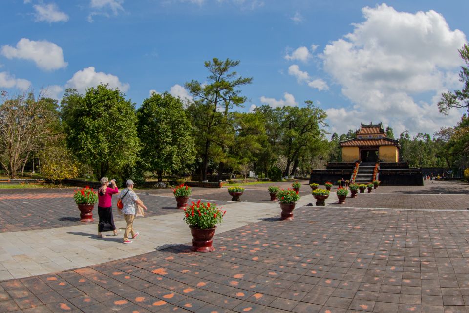 Sắc xuân nhẹ nhàng điểm tô lăng Gia Long – nơi không gian lịch sử hòa cùng hơi thở Tết cổ truyền.