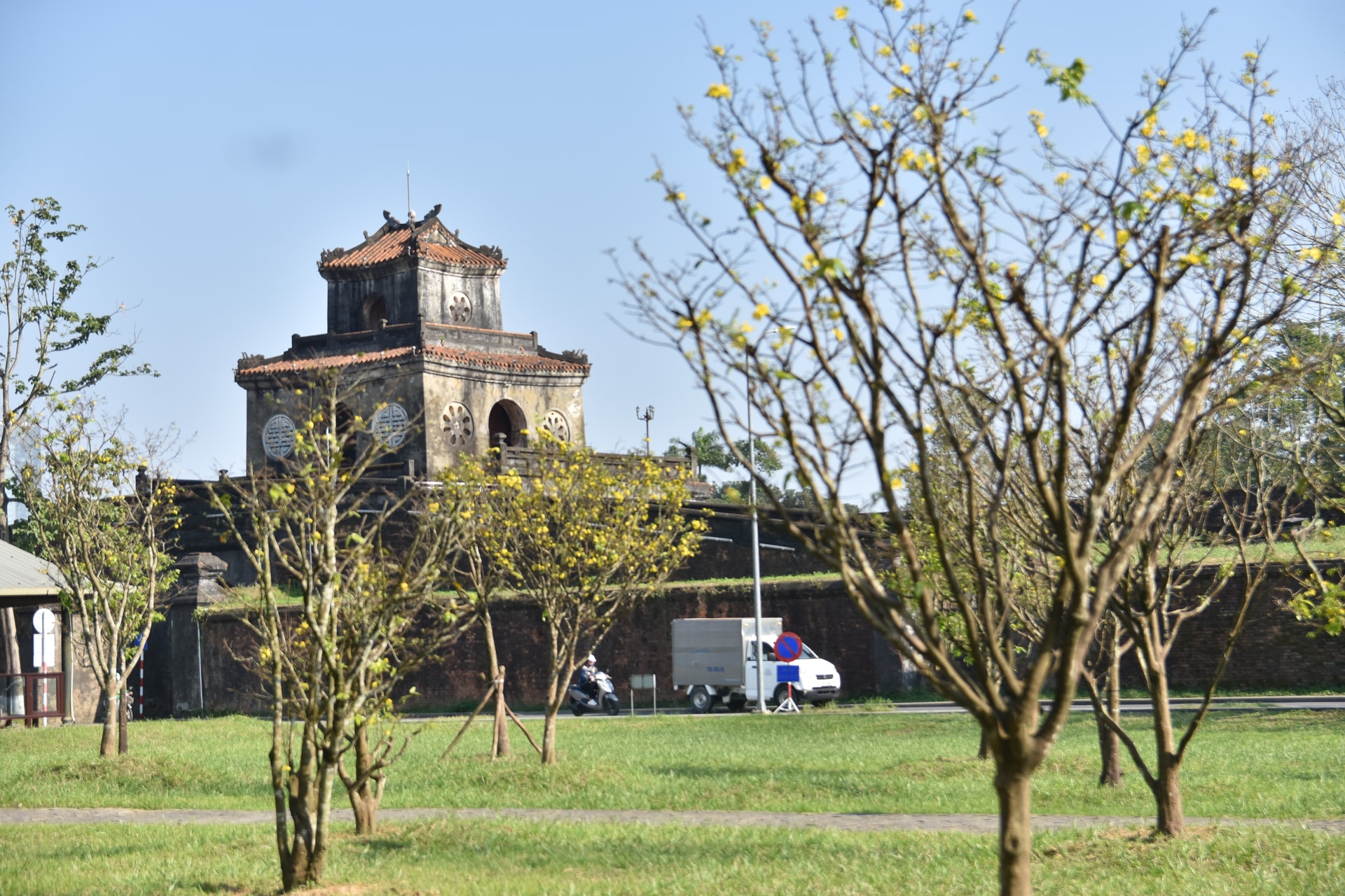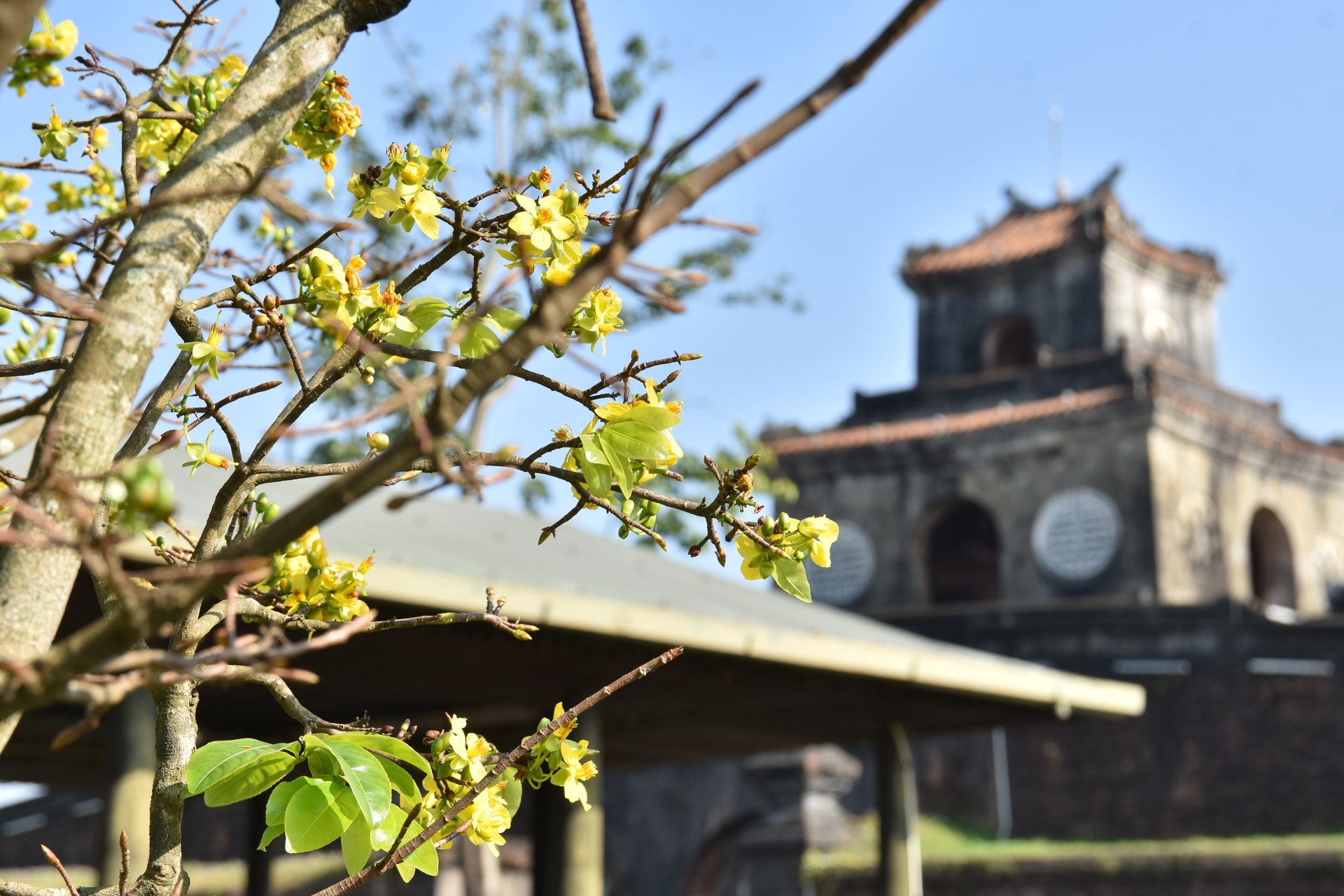 Giữa những bức tường thành rêu phong và kiến trúc nhuốm màu thời gian, sắc mai bung nở mang theo hơi thở mùa xuân, làm bừng sáng cả một vùng di sản cố đô.