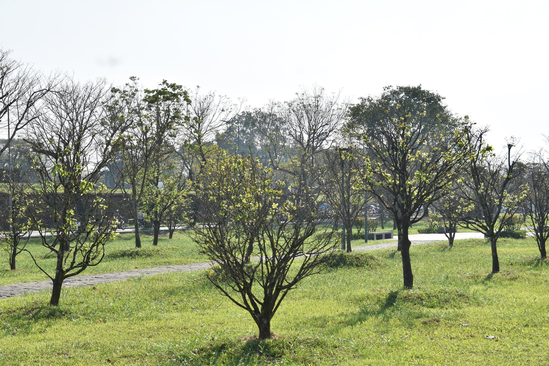 Phần lớn các cây đều có tuổi đời hàng chục năm, trong đó nhiều gốc “lão mai” từ 30 đến 60 năm tuổi, thân xù xì, rễ nổi, dáng thế cổ kính, hài hòa một cách tự nhiên với không gian uy nghi, trầm mặc của Hoàng thành xưa.