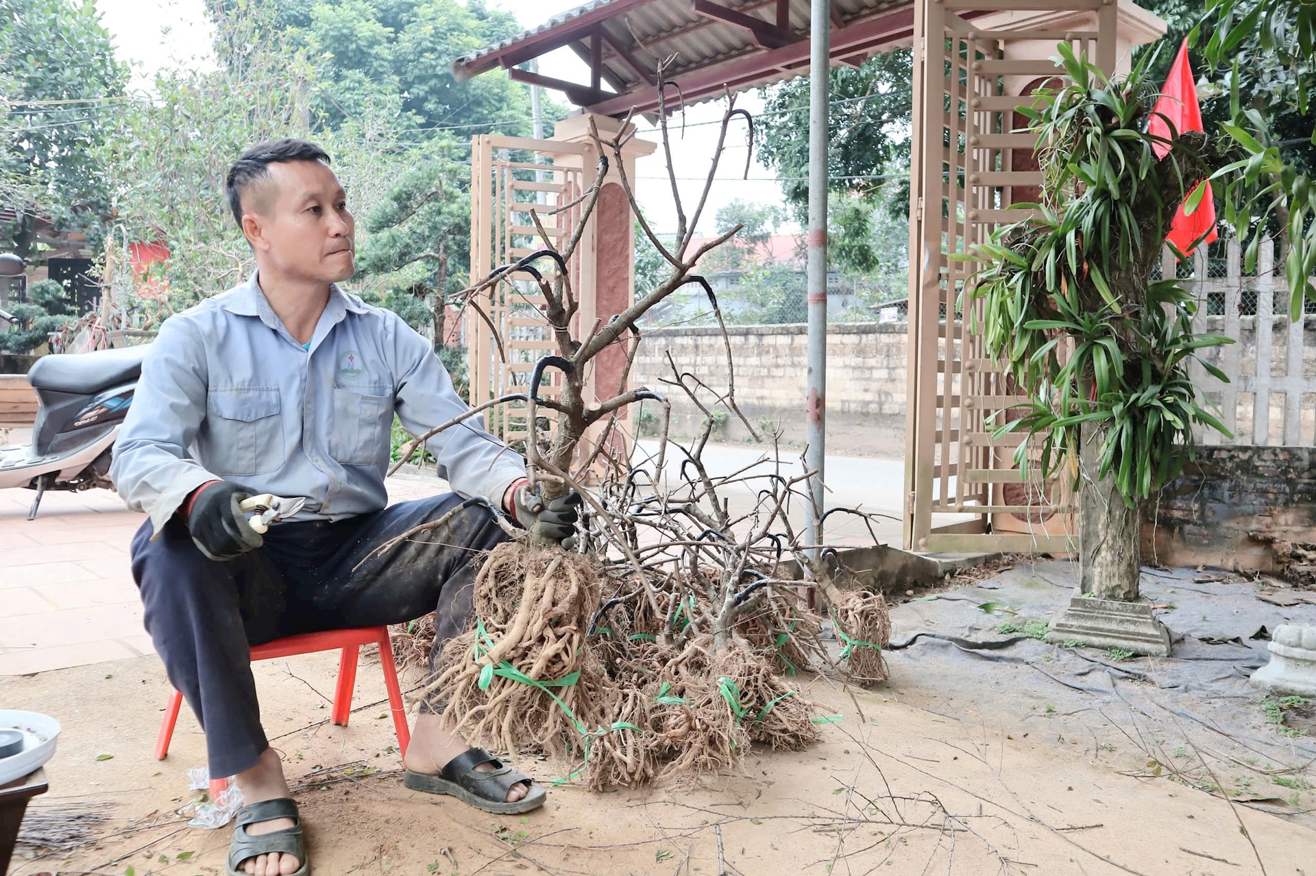 Theo lời kể của ông Trường, gần 20 năm trước, mai trắng được một số hộ dân đưa về trồng thử trên đất đồi. Khi ấy, ít người tin rằng loài cây này có thể trở thành cây chủ lực của cả vùng. Nhưng bằng sự kiên trì, chịu khó học hỏi, người dân An Hòa đã dần tích lũy kinh nghiệm, từng bước mở rộng diện tích, hoàn thiện kỹ thuật trồng và tạo thế.
