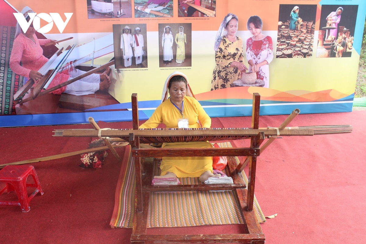 Trình diễn nghề dệt thổ cẩm Chăm tại Di tích tháp Pô Sah Inư năm 2025