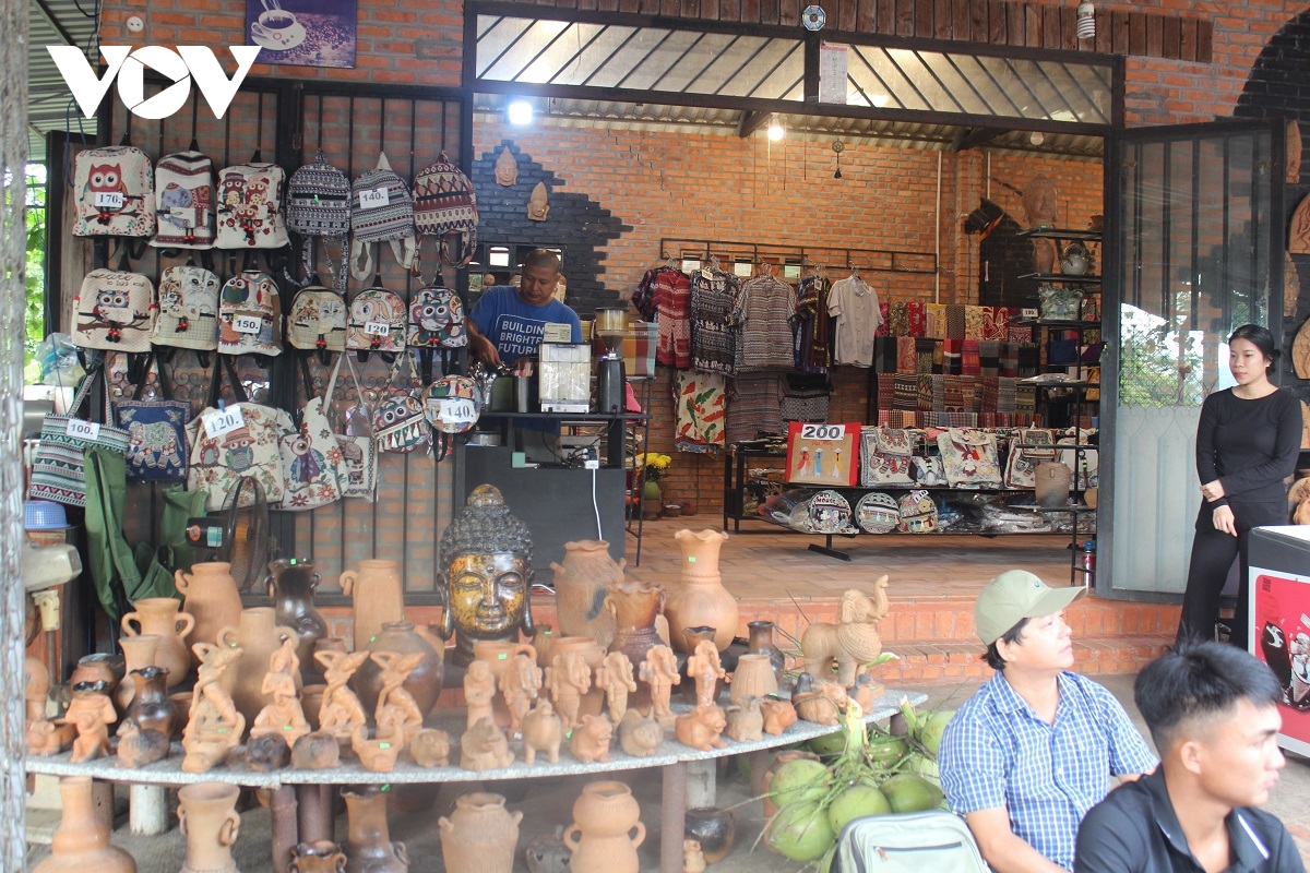 Các sản phảm mỹ nghệ được trưng bày phục vụ du khách tại khuôn viên Di tích tháp Pô Sah Inư