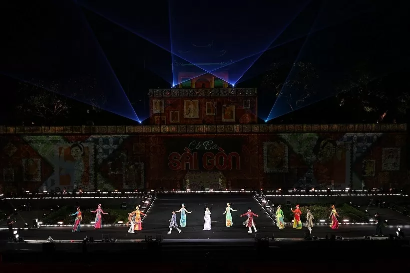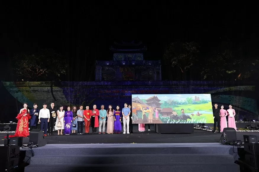 Trong ánh sáng lung linh của đêm Thu Hà Nội, những tháp cổ, tường thành và cổng Đoan Môn được chiếu sáng bằng công nghệ 3D mapping, hòa cùng âm nhạc và vũ điệu từ khắp các châu lục tạo nên bức tranh văn hóa sống động và đầy cảm xúc.