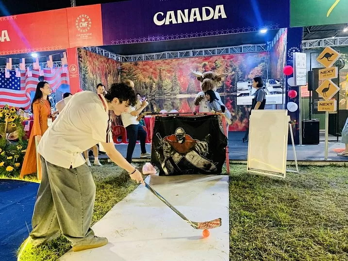 Gian hàng của Canada thu hút bởi các trò chơi thể thao. (Ảnh: Lê An)