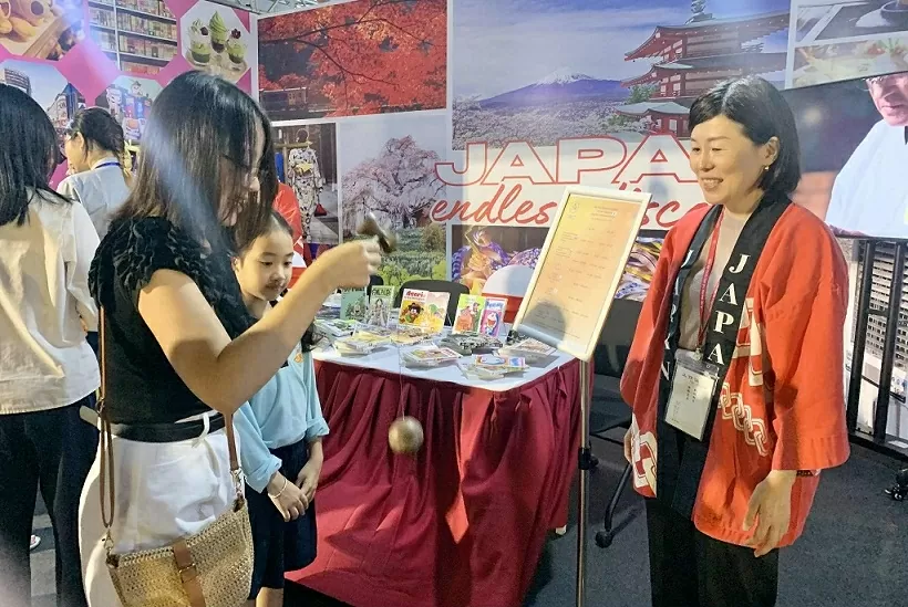 Người dân trải nghiệm trò chơi dân gian Nhật Bản. (Ảnh: Lê An)
