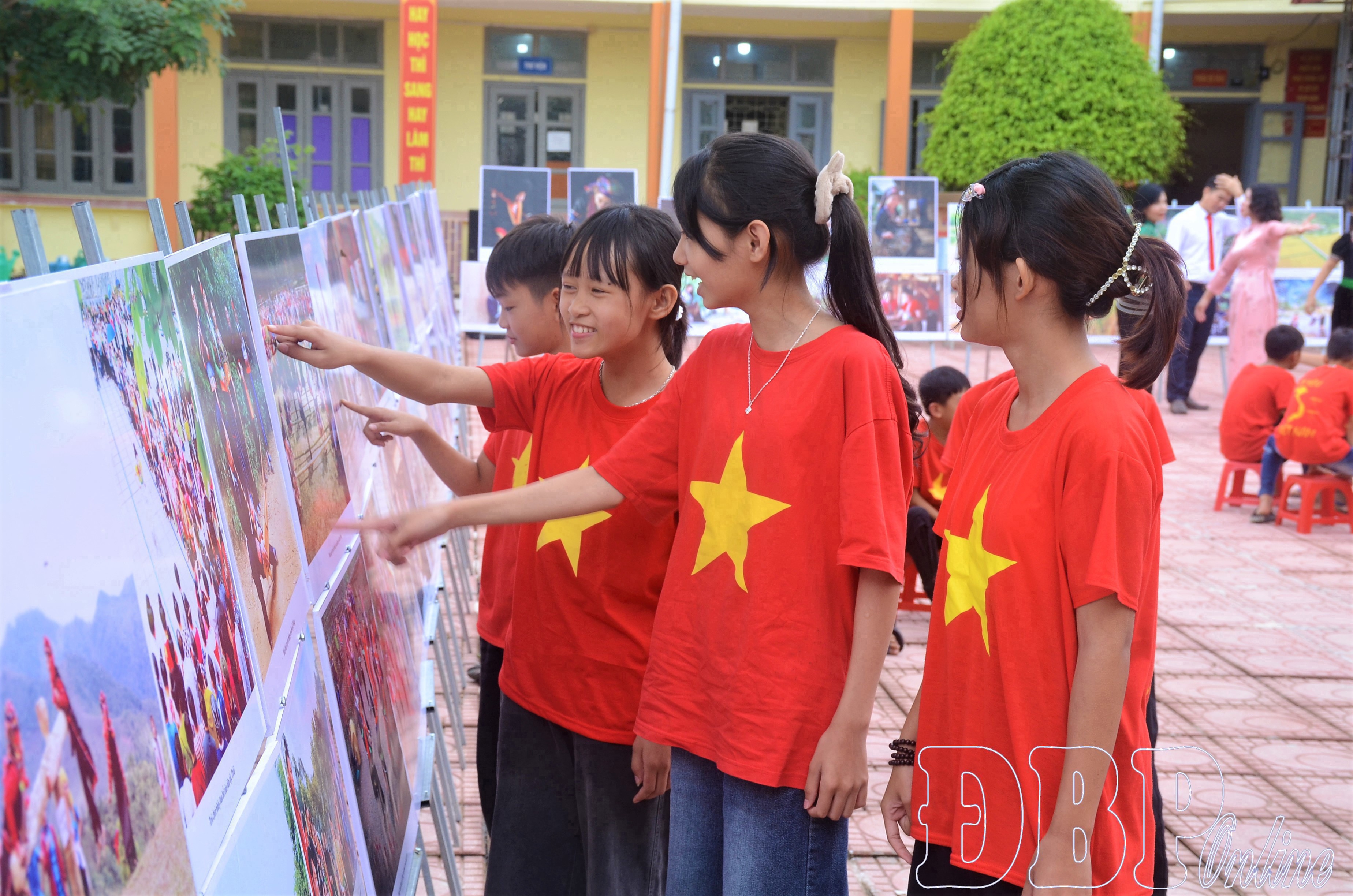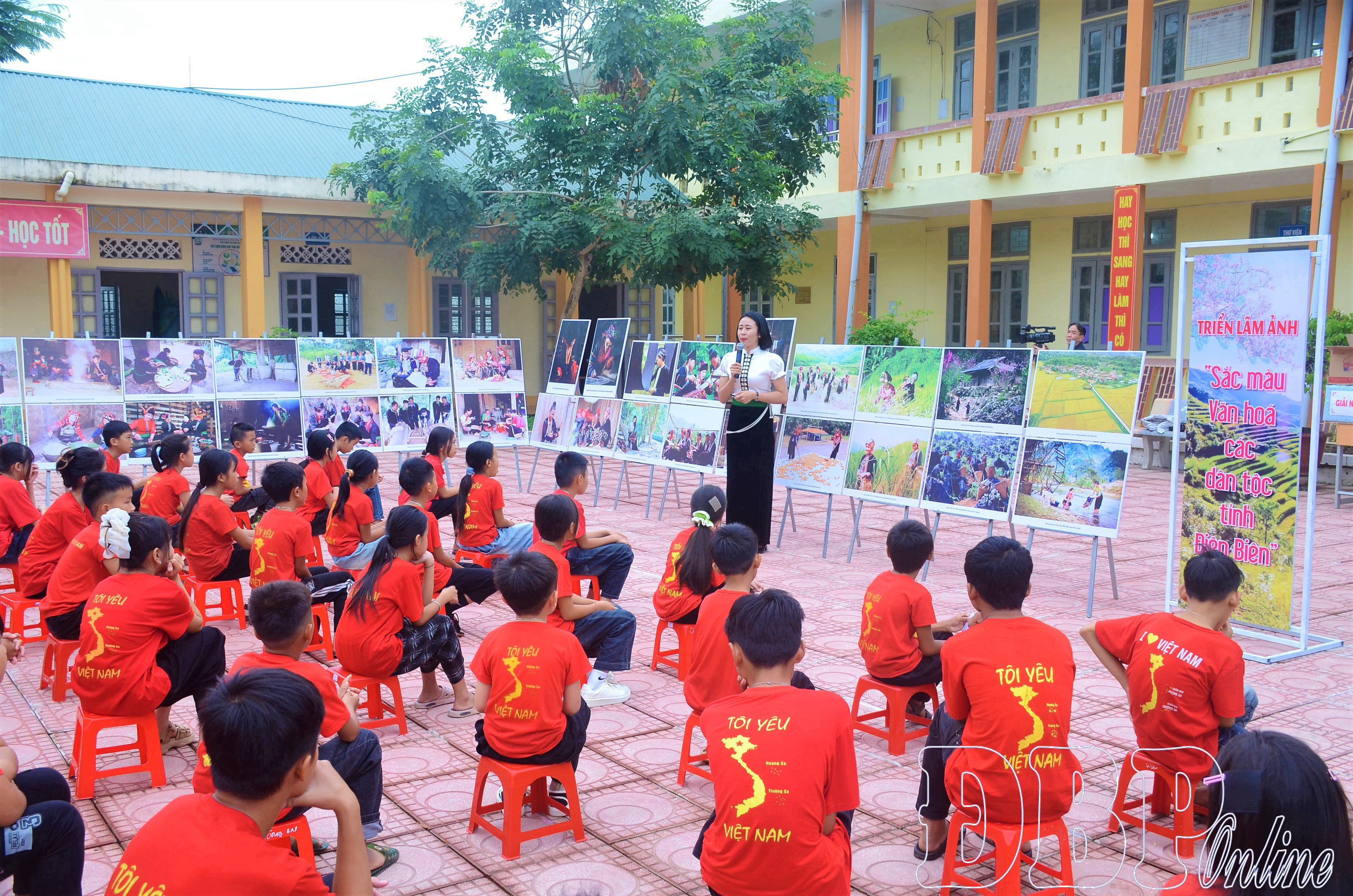 Triển lãm ảnh "Sắc màu văn hóa các dân tộc tỉnh Điện Biên" tại sân Trường THCS Thanh Nưa.