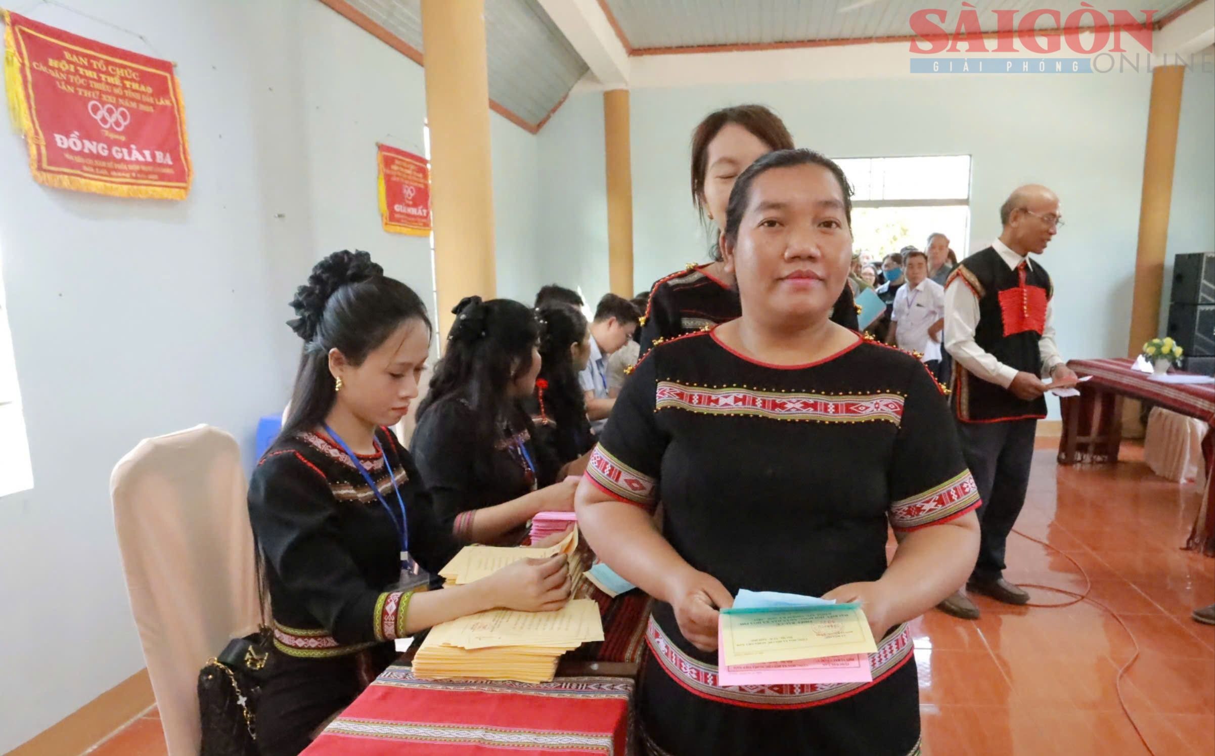 Đồng bào Jrai ở xã Gào, tỉnh Gia Lai tham gia bỏ phiếu tại khu vực bỏ phiếu số 4. Ảnh: HỮU PHÚC