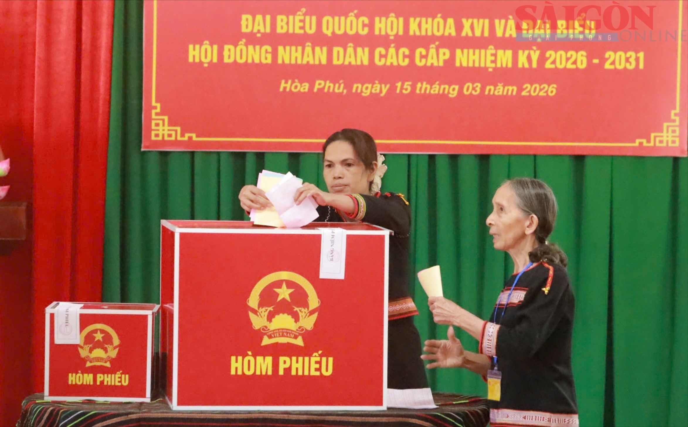 Cử tri xã Hòa Phú, tỉnh Đắk Lắk bỏ phiếu