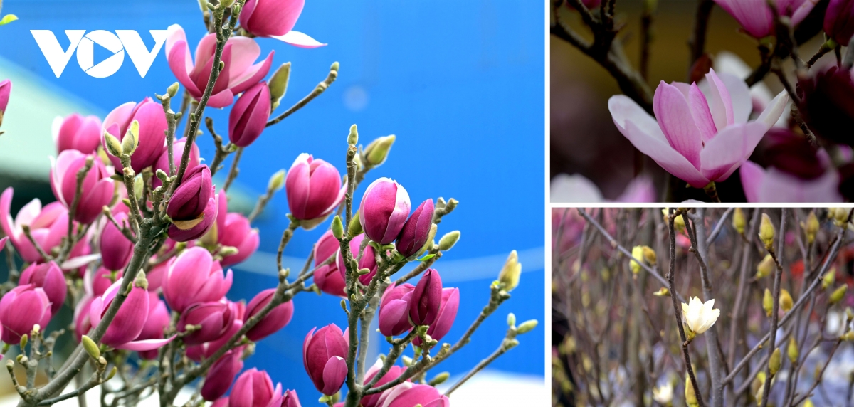 Màu tím mộc lan tạo tương phản mạnh với tiết trời khô hanh ngày cận Tết.