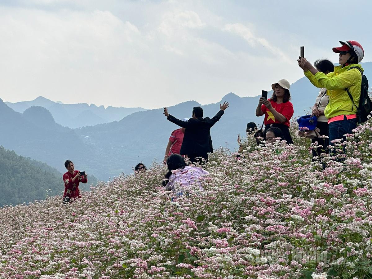 Khách du lịch thỏa thích trải nghiệm, check in trên đồi hoa tam giác mạch, xã Lũng Cú.
