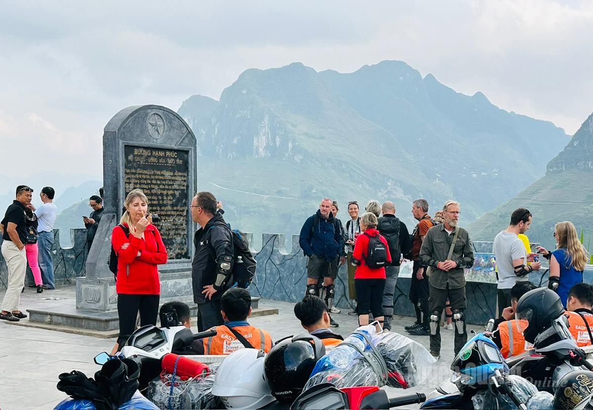 Khách du lịch nước ngoài tham quan và trải nghiệm trên cung đường Hạnh phúc và đỉnh Mã Pí Lèng Đồng Văn.