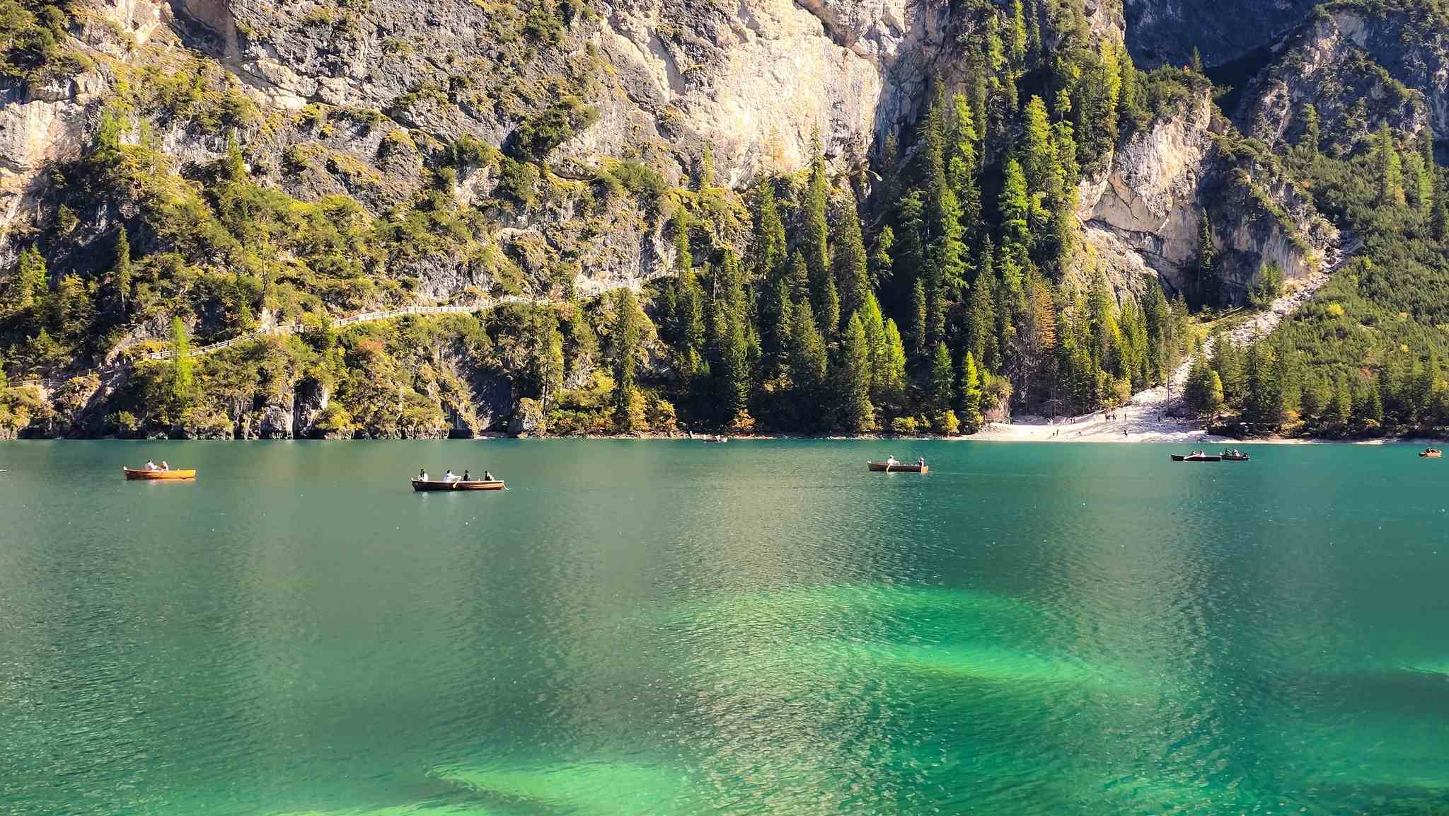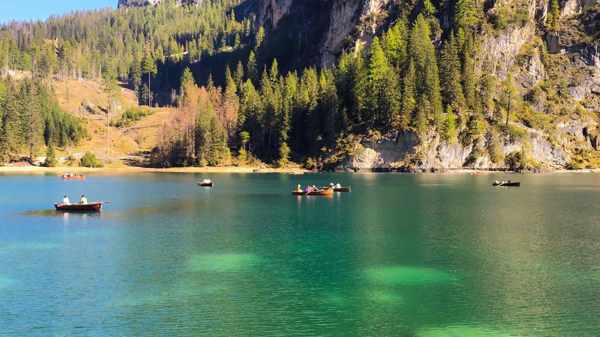 Hình ảnh du khách đi thuyền trên hồ Lago di Braies. Ảnh: Nguyễn Tất Thịnh