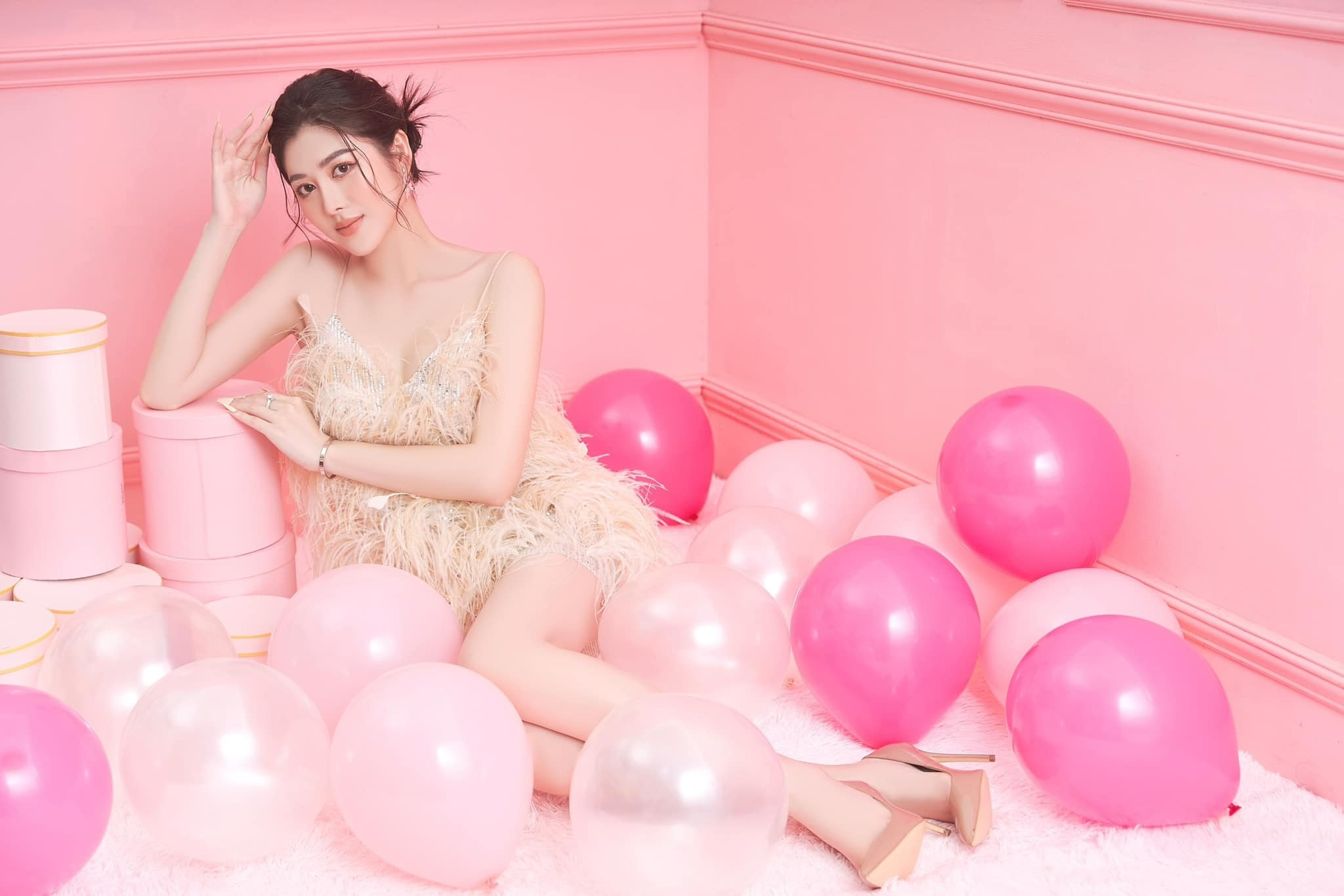 Ngoài nghệ thuật, người đẹp còn kinh doanh thời trang và theo đuổi phong cách nữ tính. Kim Thủy sở hữu nhan sắc sắc sảo nhưng không kém phần ngọt ngào.
