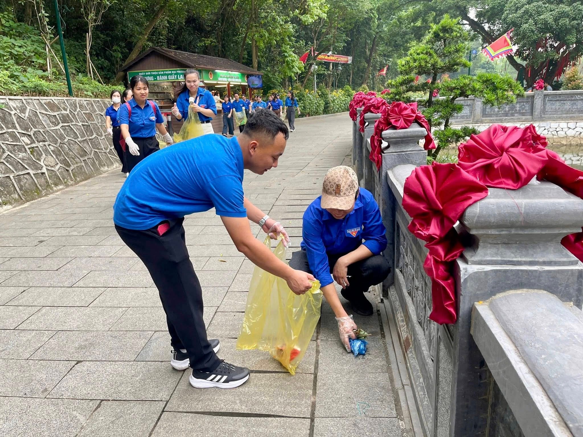 Nhiều hoạt động thiết thực được triển khai như phối hợp lực lượng công an phân luồng, điều tiết giao thông tại các tuyến trọng điểm; tham gia chống ùn tắc tại khu di tích trong những ngày cao điểm; tổ chức hướng dẫn, hỗ trợ du khách; trực tiếp thu gom rác thải, giữ gìn vệ sinh môi trường.