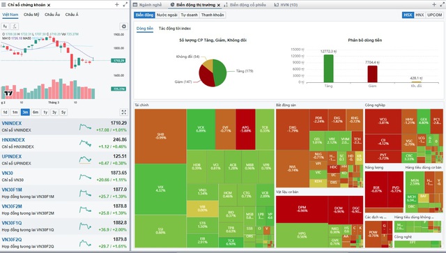 Kết phiên, phe mua kéo lại 17,08 điể, tương đương 1,01%, qua đó giúp chỉ số chung vượt 1.710,29 điểm.