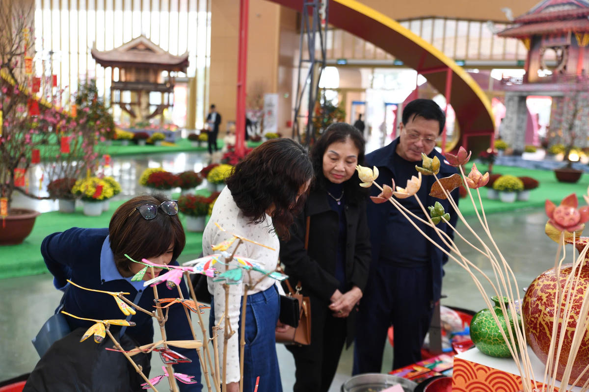 Không gian "Tết Sum vầy” còn là nơi trưng bày, giới thiệu, tôn vinh sản phẩm thủ công mỹ nghệ, làng nghề truyền thống. Ảnh: Phạm Sỹ.