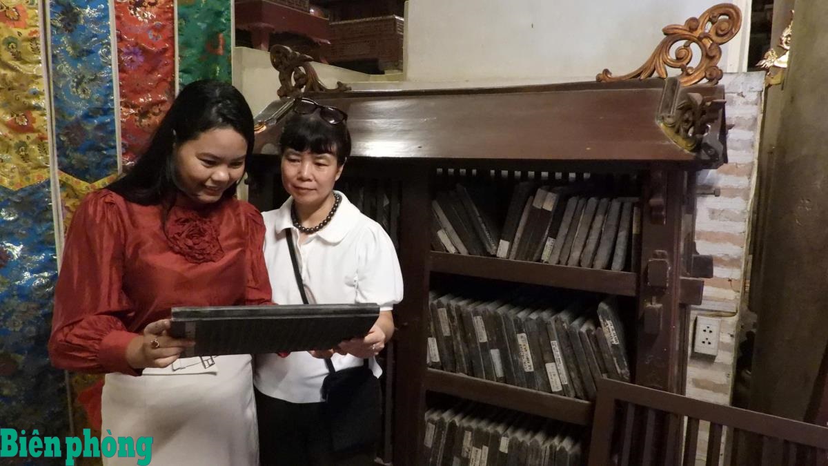 Du khách chiêm ngưỡng Bảo vật quốc gia Mộc bản chùa Vĩnh Nghiêm. Ảnh: Đức Giang