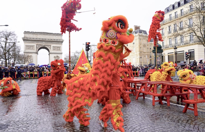 Trên đại lộ Champs-Élyseés ở Thủ đô Paris (Pháp), người dân và du khách đã chứng kiến một trong những màn múa lân độc đáo nhất. Đây là lần thứ tư cuộc diễu hành mừng Tết Nguyên đán diễn ra trên đại lộ nổi tiếng này.