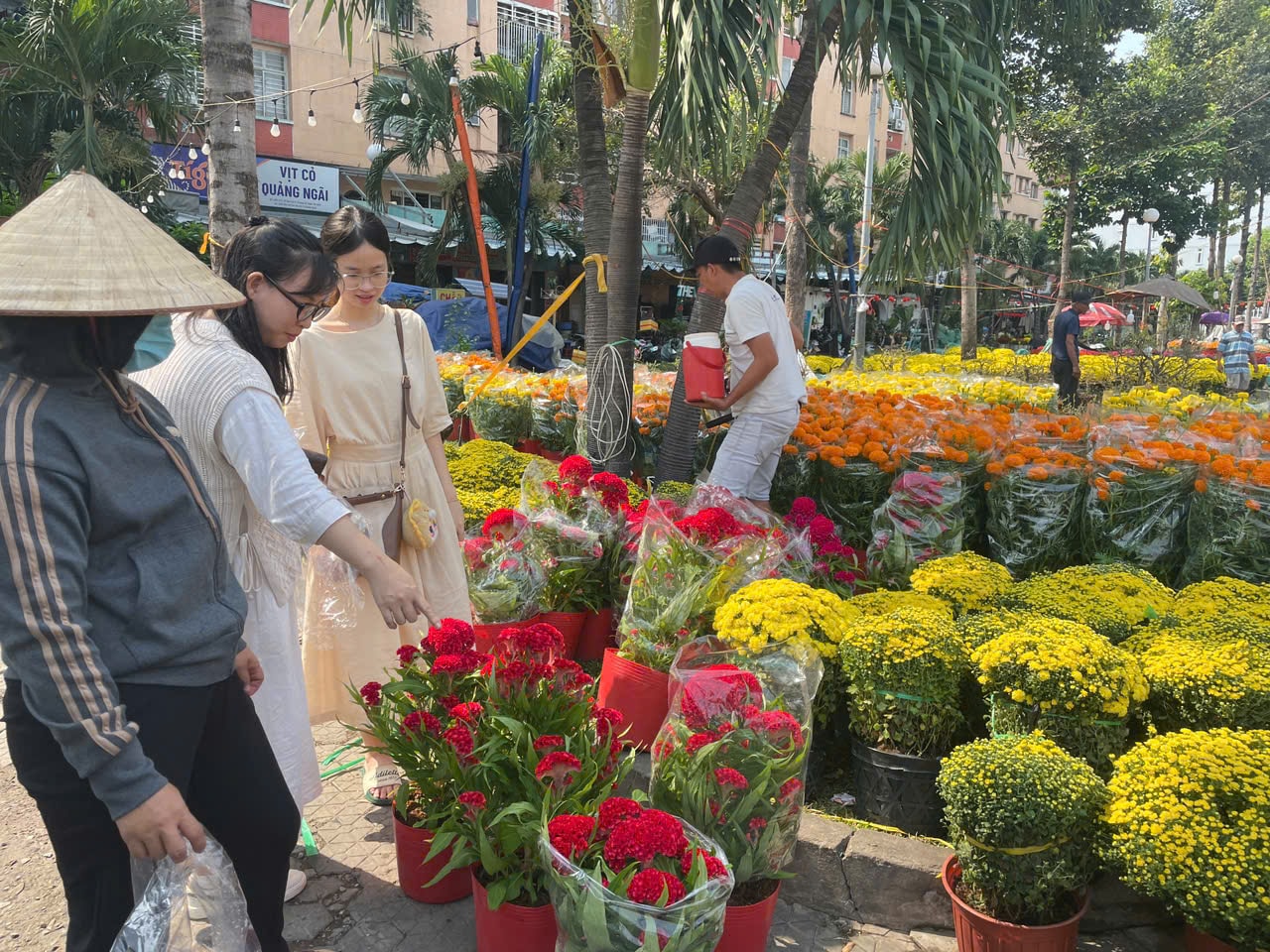 Ở phường Thới An, các bãi đất trống ven sông Vàm Thuật tiếp tục được tận dụng trồng hoa Tết, xen giữa khu dân cư và cao ốc. Những thửa hoa cúc, vạn thọ, mào gà nối tiếp nhau, tạo nên mảng màu đặc trưng của vùng ven đô. Tuy nhiên, mưa nhiều kéo dài khiến sâu bệnh tăng, buộc người trồng phải tăng chi phí chăm sóc. Một số hộ cho biết dù đã gắn bó với nghề nhiều năm, nhưng năm nay vẫn phải giảm sản lượng để tránh rủi ro khi sức mua chưa rõ ràng.